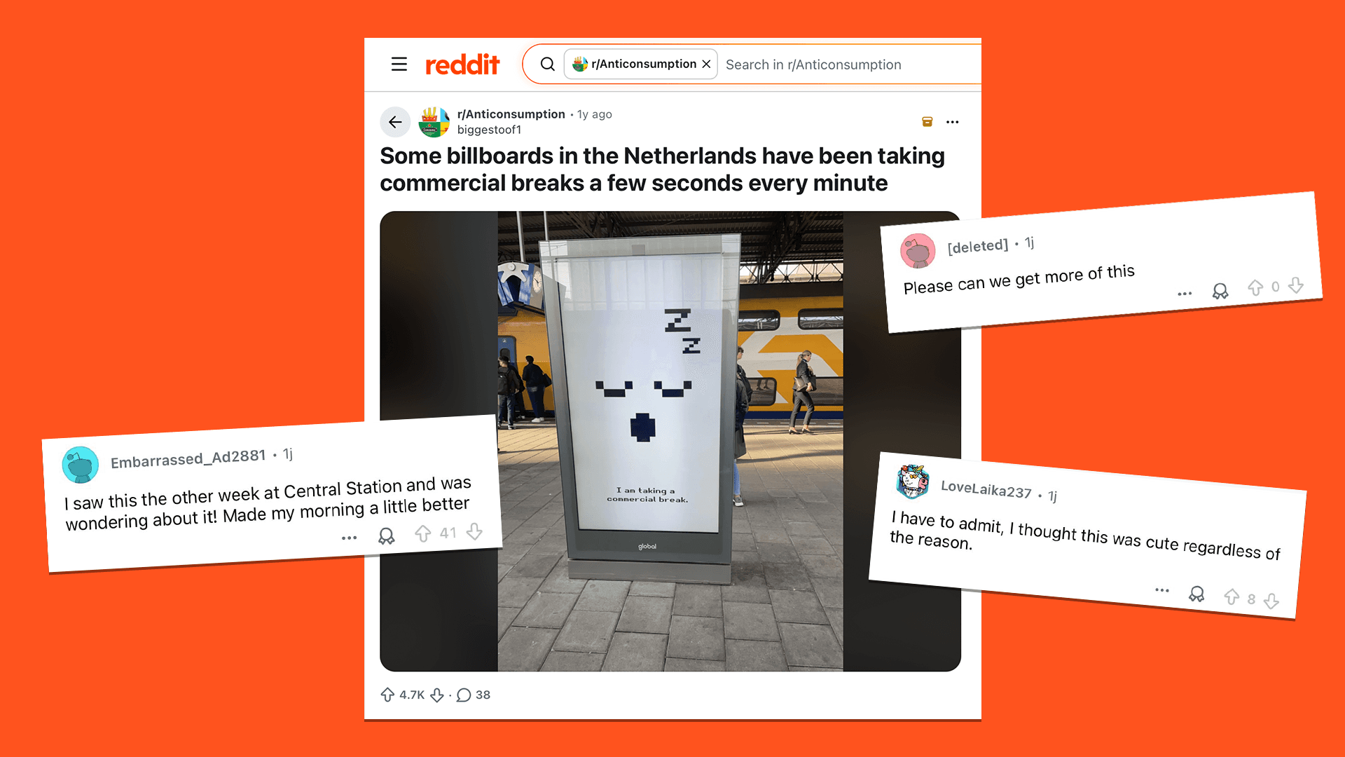 that’s why we’re giving the billboards 10 seconds of well-deserved sleep. a sleep that simultaneously gives us an advertising stimulus break. we do this by giving the billboards a sleeping face (literally).